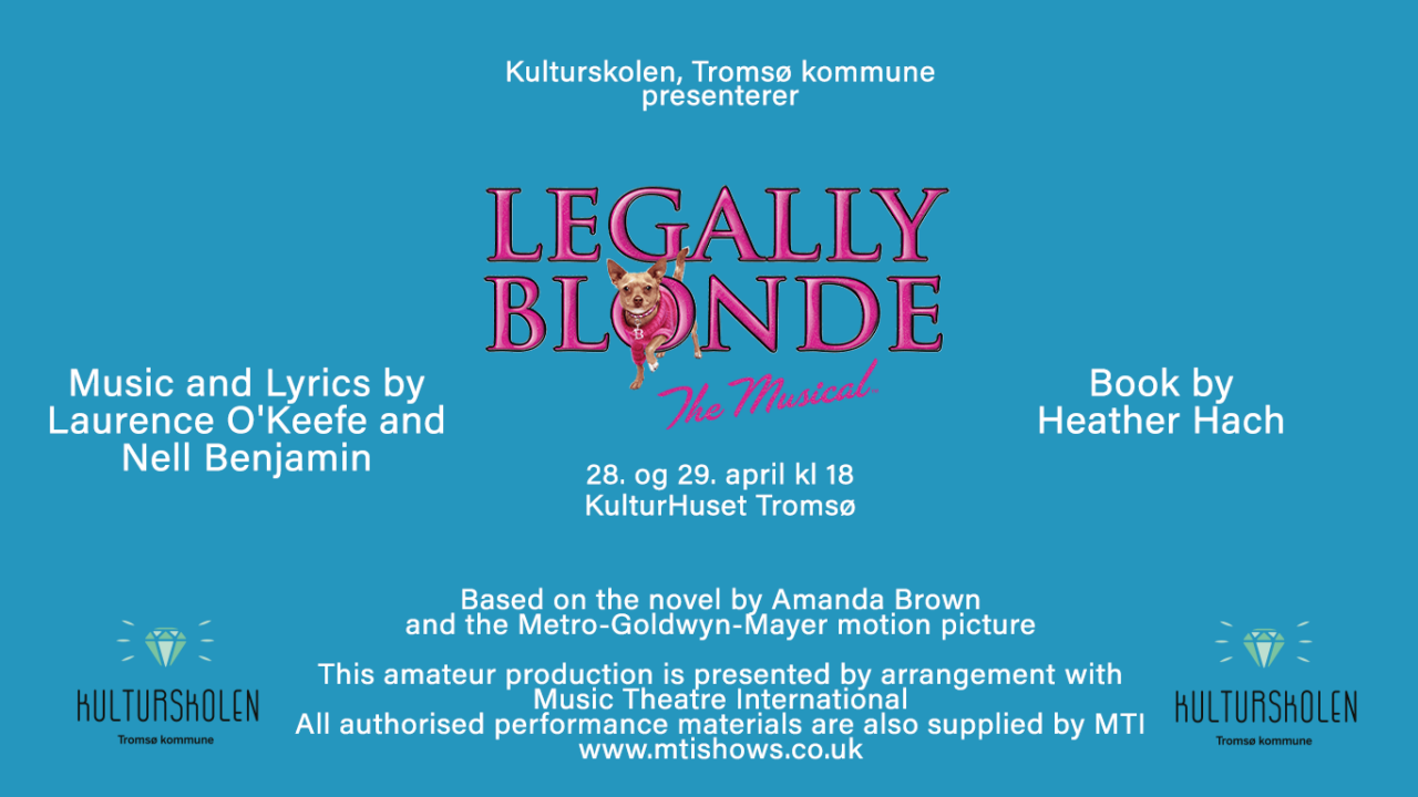 Kulturskolen presenterer: Legally Blonde – The Musical Bli med på en energisk og fargerik musikalopplevelse når musikalklassen ved Kulturskolen setter opp den populære musikalen Legally Blonde! Historien følger den sjarmerende og målbevisste Elle Woods på hennes overraskende reise fra motestudent til jusstudent ved Harvard – full av humor, fengende musikk og inspirerende budskap om å tro…
