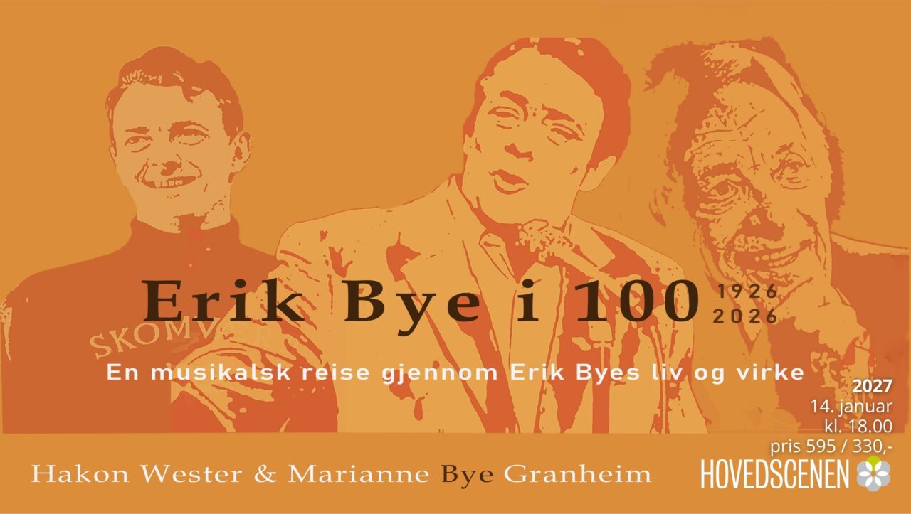 Erik Bye i 100! Bli med Hakon Wester og Erik Byes barnebarn Marianne Bye Granheim på en stemningsfull jubileumsforestilling der Erik Byes sanger fremføres sammen med bilder, filmklipp og historier fra hans unike og mangfoldige liv. 1.mars sto de på scenen i et fullsatt Oslo konserthus til stående ovasjoner, og torsdag 14. januar 2027 kommer de med forestillingen…