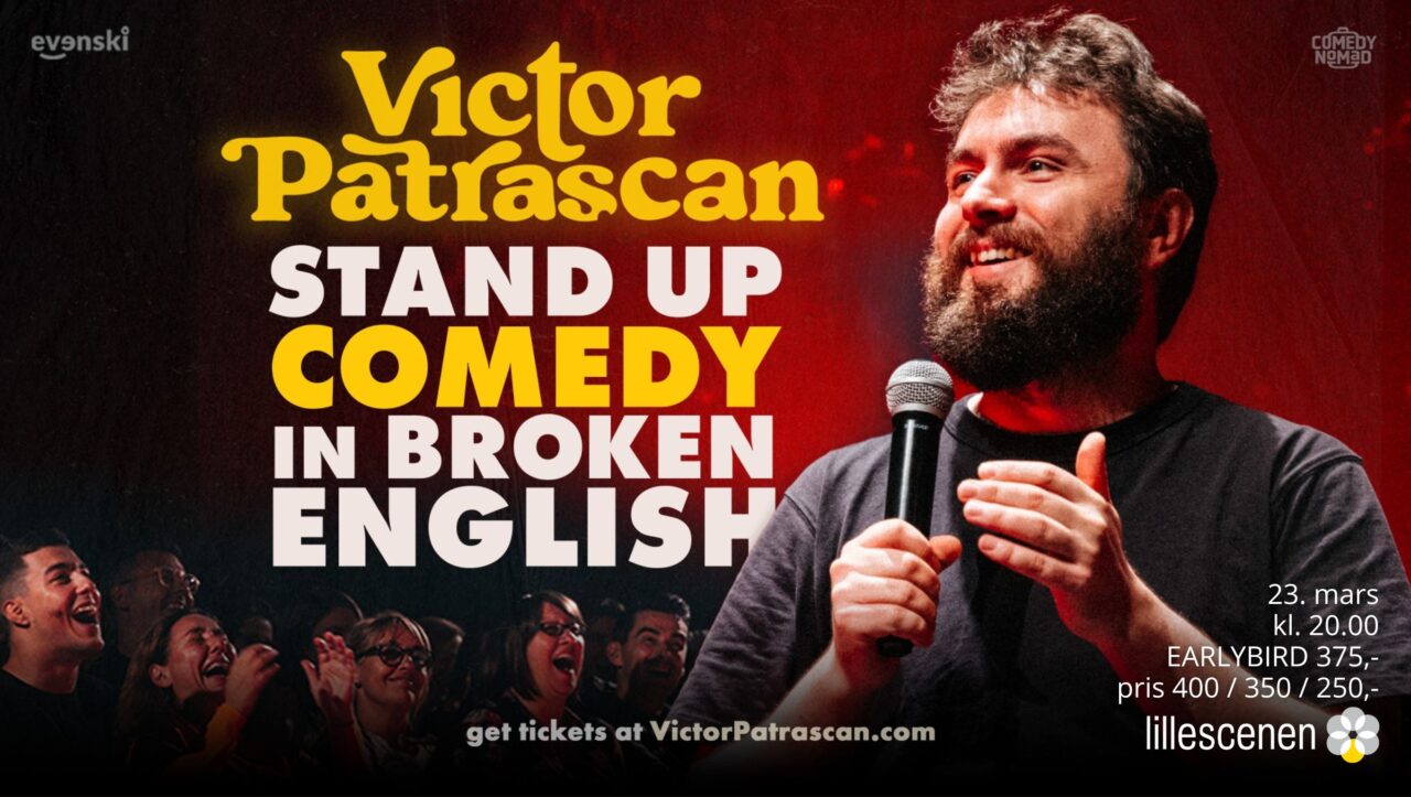 Stand up Comedy in broken English • Victor Patrascan in Tromsø Laugh with Europe’s comedy nomad, Victor Pãtrãşcan – the rebel comedian-philosopher whose sharp jokes have taken him to about 60 countries, millions of screens, and even onto a few government watchlists (true story: he’s officially banned by the new Georgian government for being ‘too…
