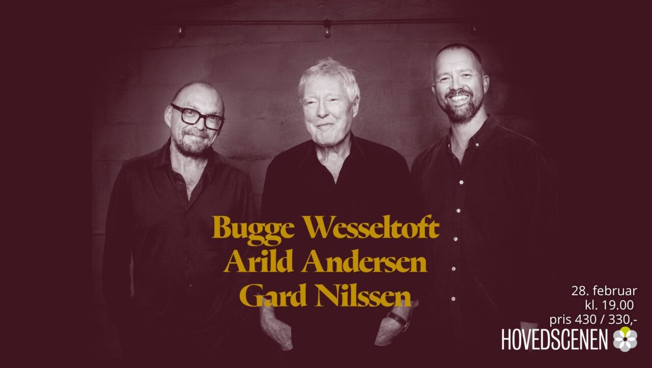 WESSELTOFT-ANDERSEN-NILSSEN TRIO Bugge Wesseltoft, Arild Andersen, Gard Nilssen. Bare smak på navnene. Nærmere supergruppe er det nesten umulig å komme både her til lands og langt utenfor våre grenser. Tangentsjef Jens Christian Bugge Wesseltoft (61), bassmaestro Arild Andersen (79) og den store, nye trommeslageren Gard Nilssen (42), er representanter for tre generasjoner norske jazzmusikere…