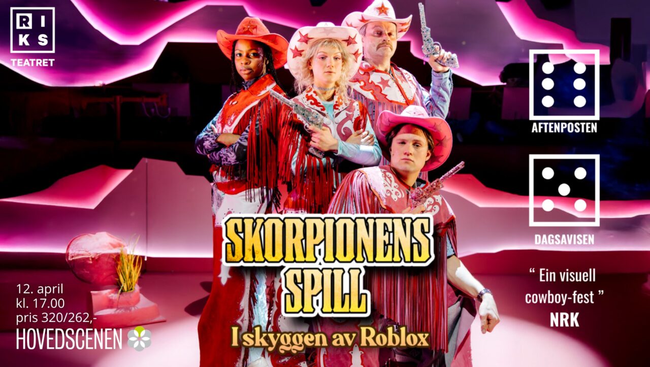 Riksteatret: Skorpionens spill – I skyggen av Roblox En historie om spill, makt og frihet – i en verden der du må kode din egen vei. Bli med på en helt ny opplevelse der vennedrama møter Roblox. En spennende kveld for deg som liker å game, og for alle som har lyst på en actionfylt…