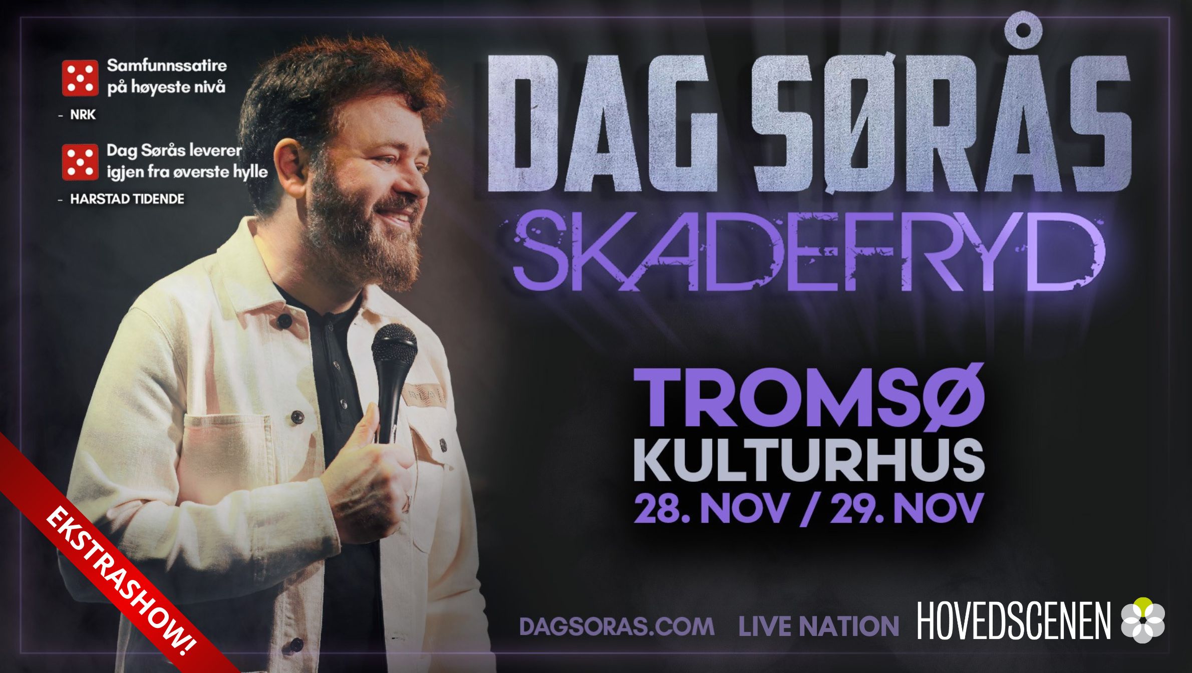 «Skadefryd» er røft regnet Dags syvende soloshow, og veien hit har gått fra brune barer om ombygde utedasser, til de største kulturhusene i landet. Publikum har ikke bare tatt reisen med nordlendingen, men også formert seg kraftig underveis.