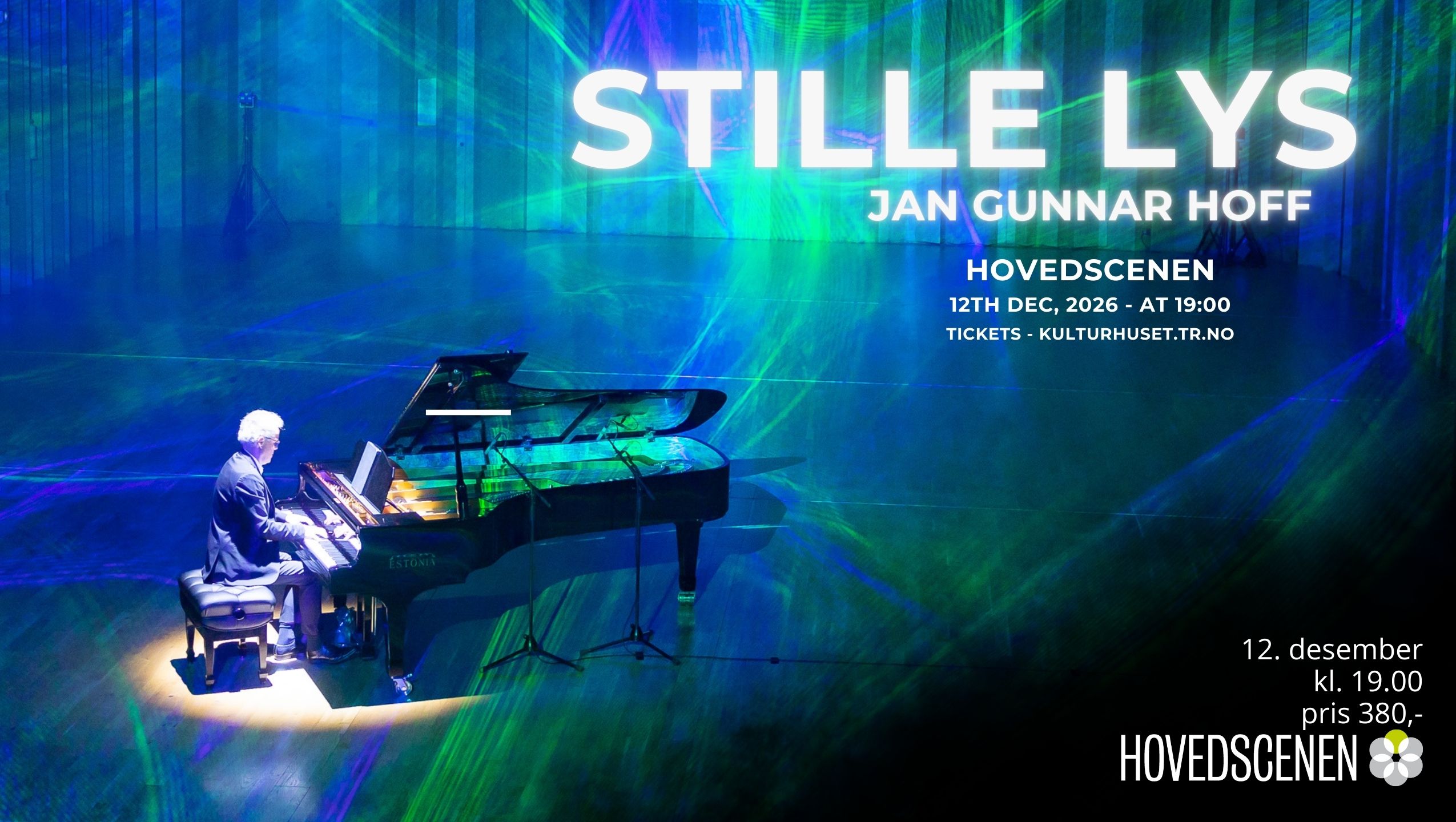 Bodøs prisbelønte jazzpianist Jan Gunnar Hoff er tilbake i Tromsø med sin julekonsert STILLE LYS. De som har opplevd denne konserten husker det garantert som en stemningsfull og nær opplevelse, med vakker sceneregi og lyssetting. Med Hoffs lavmælte tolkninger av juleklassikere, både nordnorske og andre, senker publikum skuldrene og lar seg henføre!