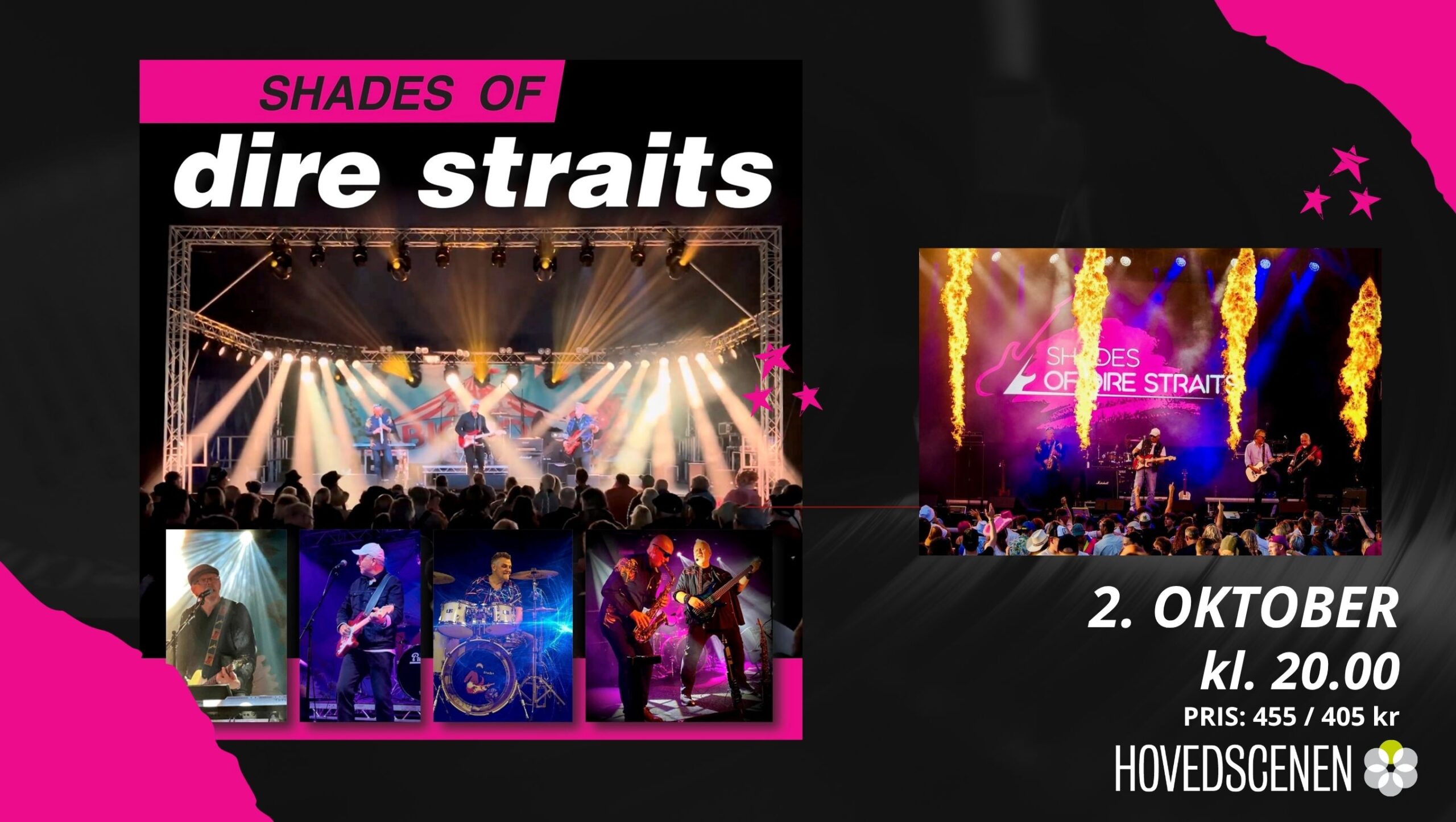 Gjør deg klar for en kveld full av ikoniske gitarriff og legendarisk rockestemning! «Shades of Dire Straits» leverer en heftig hyllest til et av tidenes største band. Dette vil du ikke gå glipp av!